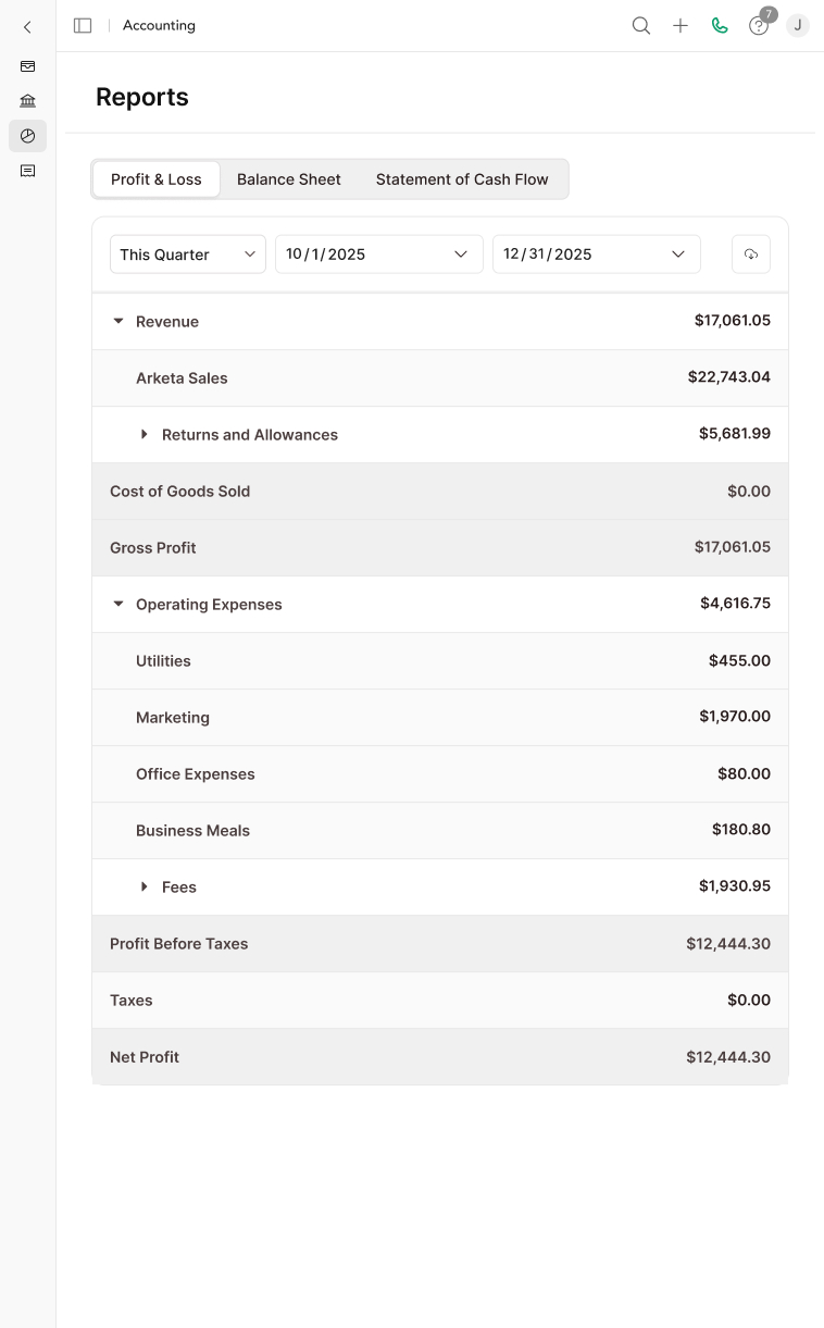 Your bookkeeper pulls data directly from your Arketa dashboard. Everything syncs in real time, eliminating manual data entry and reducing errors. Your books stay current without any extra work from you.